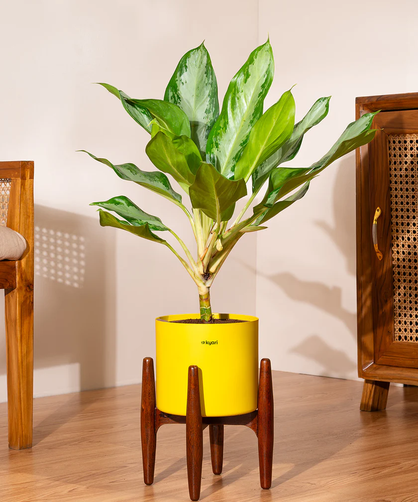 - Aglaonema Ice Plant with Large Metal Self Watering Pot