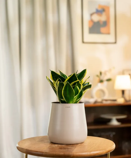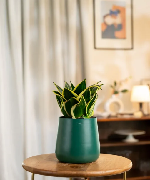 - Golden Hahnii Snake Plant with Medium Metal Self Watering Pot