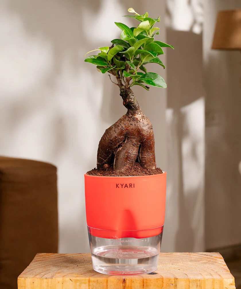 Bonsai plants prefer bright, indirect light. Some species can tolerate full sun, while others prefer partial shade. Water when the top inch of soil feels dry. Bonsai trees prefer consistent moisture but should not be waterlogged. Thrives in moderate to high humidity.