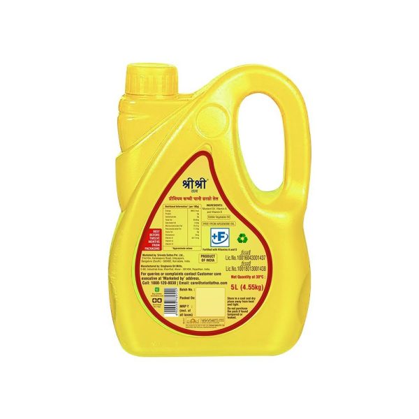 The Kachi Ghani Mustard Oil produced by Sri Sri Tattva has the essential oil content of Mustard Oil which acts as a preservative, displays antibacterial and antioxidant properties. Kachi Ghani is the cold press extraction process wherein mustard seeds are crushed at a low temperature so that the natural properties, antioxidants and essential oils are retained in the oil. Sri Sri Tattva Kachi Ghani Mustard Oil is rich in?monounsaturated and polyunsaturated fats, fortified with Vitamin A & D and free from Argemone Oil.