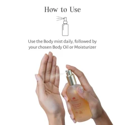 Spray the Body mist daily or as required followed by Body Oil or Body Moisturizer of your choice.