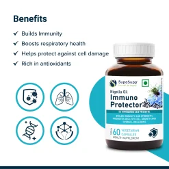 SupaSupp Nigella Oil Immuno Protector | Builds Immunity And Strength, Promotes Healthy Cell Growth And Overall Wellbeing | Health Supplement | 60 Veg Cap, 500 mg
